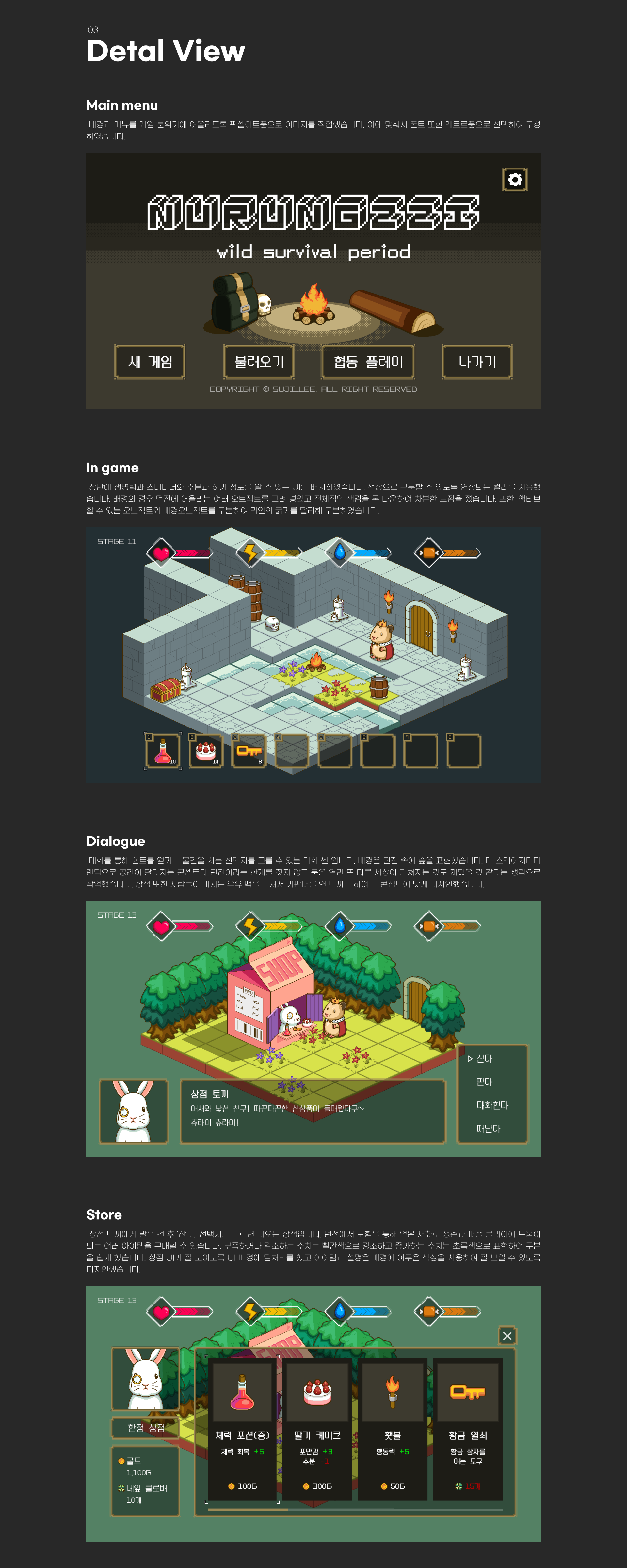 | [PROJECT 01] Mobile RPG Game UI Concept Design (0) | 2021.04.12 |